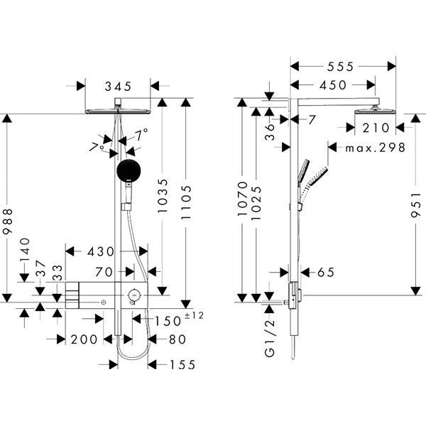 Raindance Alive Q Showerpipe 210/340 2jet EcoSmart med ShowerSelect Comfort
