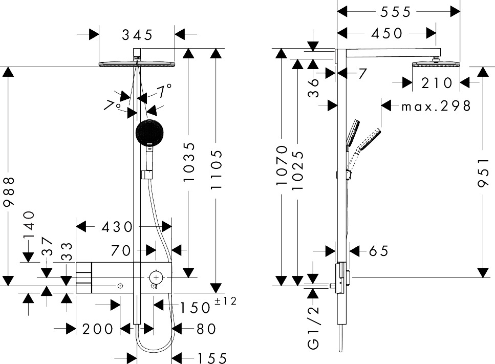 • huvuddusch Raindance Alive Q 210/340 2jet