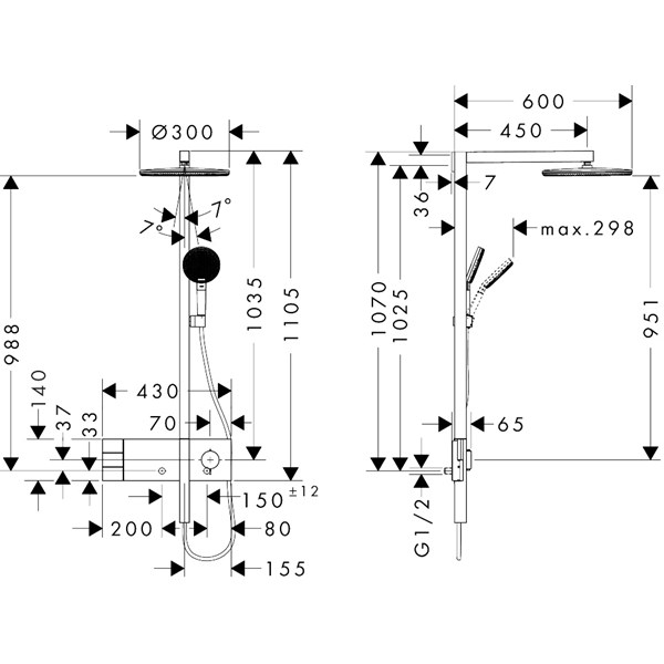 Raindance Alive S Showerpipe 300 2jet EcoSmart med ShowerSelect Comfort Mattvit