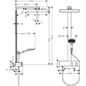 • maximal flödeshastighet för Showerpipe vid 3 bar: 15,9 l/min
