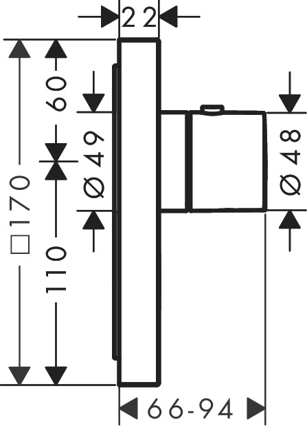 ShowerSelect Termostat Highflow inbyggnad Square med avstängning