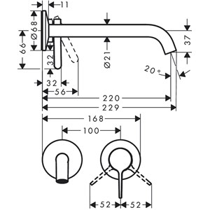 • består av: 1-grepps tvättställsblandare för inbyggnad i vägg, bottenventil