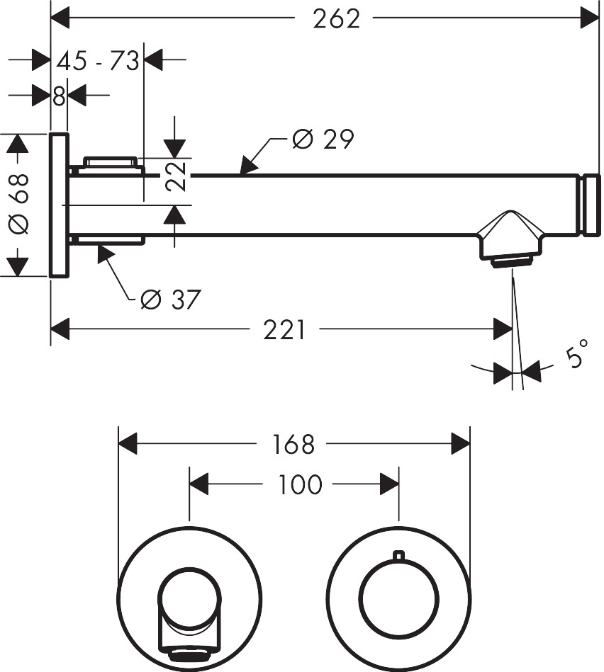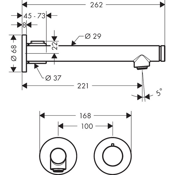 • består av: tvättställsblandare för inbyggnad i vägg, bottenventil