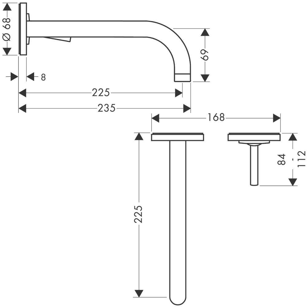 • består av: 1-grepps tvättställsblandare för inbyggnad i vägg, bottenventil