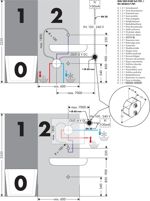 Inbyggnadsdel elektroniska tvättställsblandare (väggmontage)