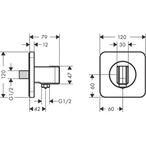 Citterio E Porter duschhållare med slangvinkel 120/120 softsquare Borstad mässing