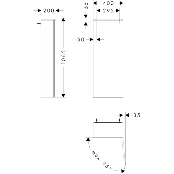 Xilesa E Medelhögt skåp 400/200, dörrgångjärn till höger