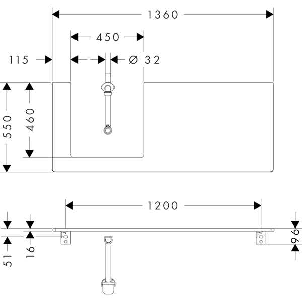 Xelu Q Bänkskiva 1360/550 med utskärning till vänster bänkmonterat tvättställ me