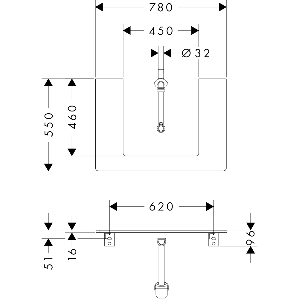 Xelu Q Bänkskiva 780/550 för bänkmonterat tvättställ center 500/480