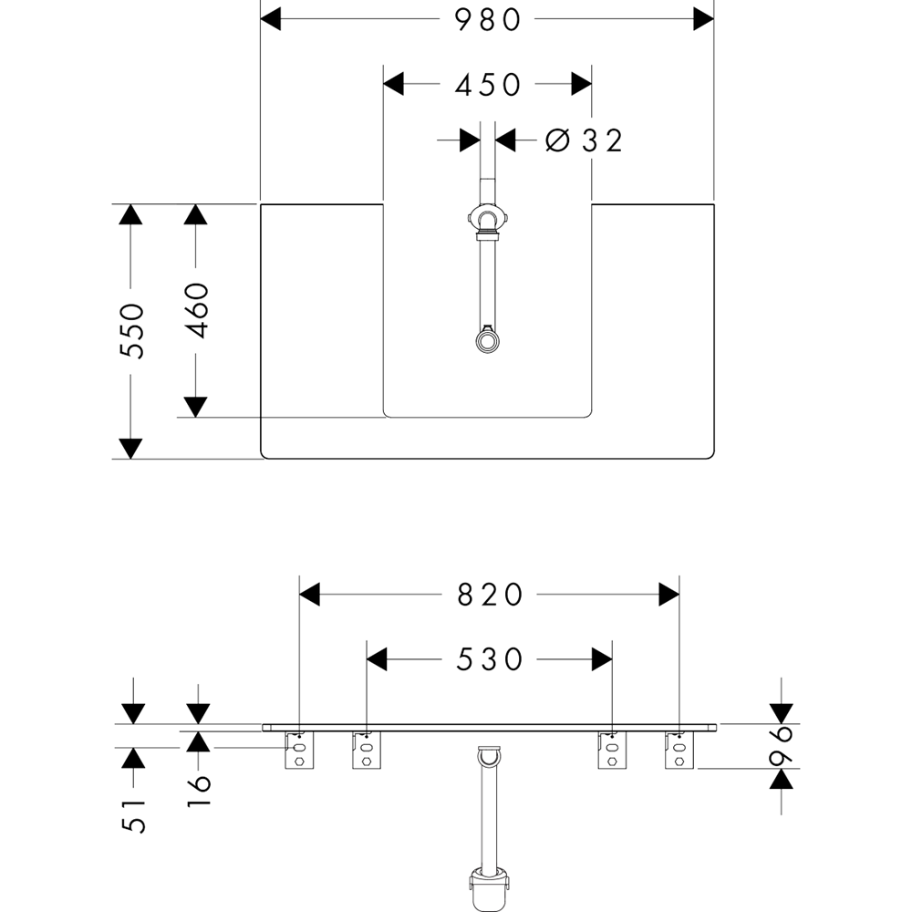 • utskärning för tvättställ: centrerad