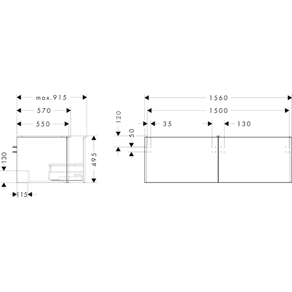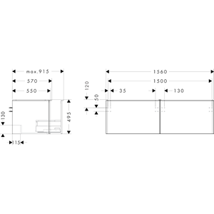 Xelu Q Kommod matt diamantgrå 1560/550 med 2 lådor bänkskiva med utskärning i mi Mattsvart