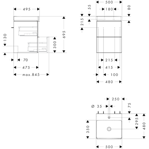 • platsbesparande vattenlås måste beställas separatKommod• antal lådor: 2 lådor