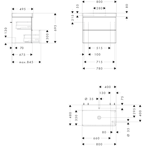 • platsbesparande vattenlås måste beställas separatKommod• antal lådor: 2 lådor