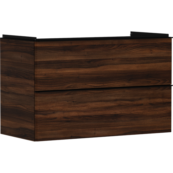 Xelu Q Kommod mörk valnöt 980/475 med 2 lådor tvättställ Mattsvart