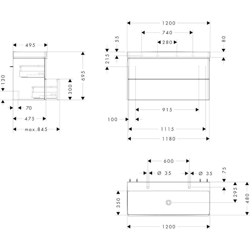 • platsbesparande vattenlås måste beställas separatKommod• antal lådor: 2 lådor