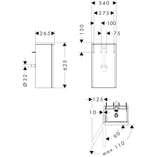 Xelu Q Kommod naturlig ek 340/245 handfat, dörrgångjärn till vänster Mattsvart