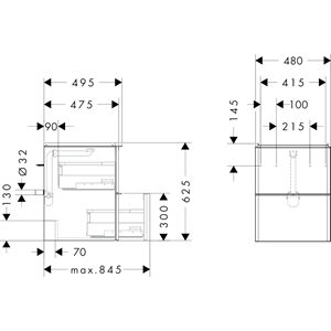 • består av: kommod, lådindelare basuppsättning, platsbesparande vattenlås