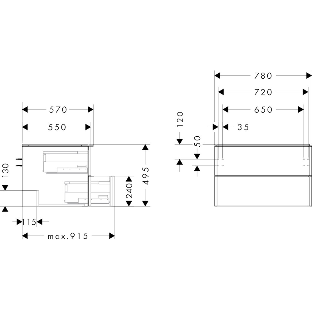 Xelu Q Kommod naturlig ek 780/550 2 lådor för bänkskiva utskärning center Mattsvart