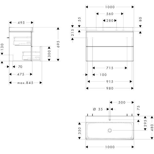 • platsbesparande vattenlås måste beställas separatKommod• antal lådor: 2 lådor