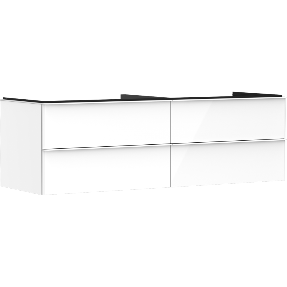Xelu Q Kommod vit högglans 1560/550 med 4 lådor för bänkskiva utskärning center Mattvit