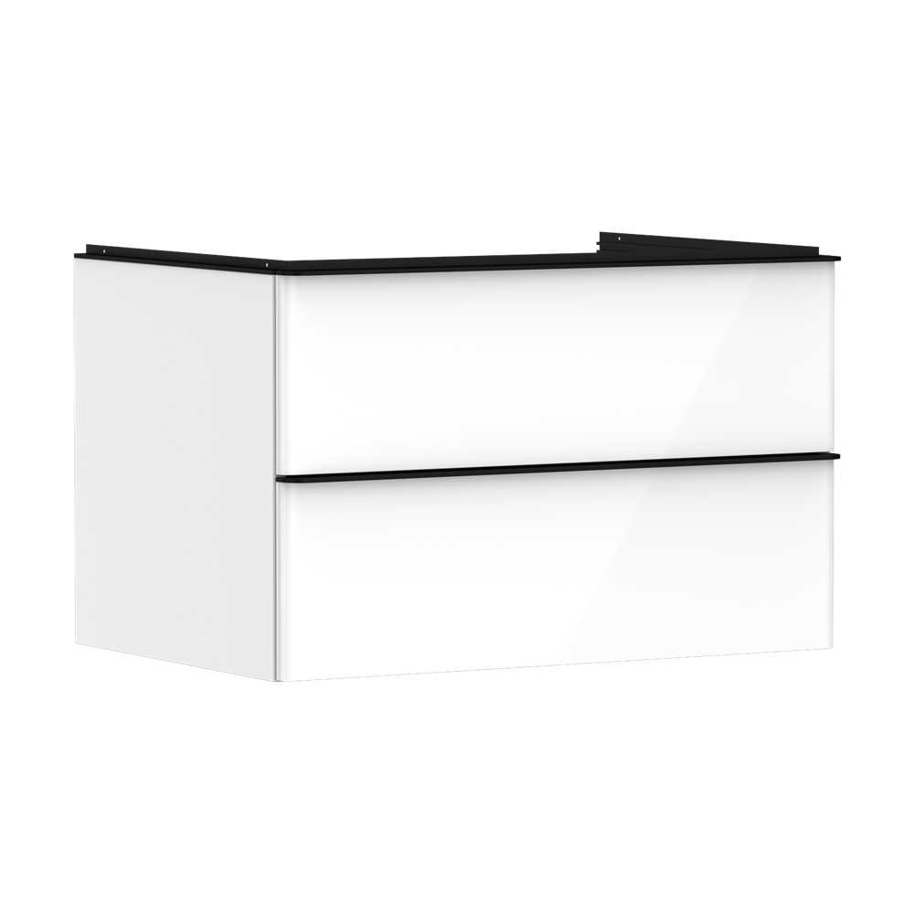 Xelu Q Kommod vit högglans 780/550 2 lådor för bänkskiva utskärning center Mattsvart
