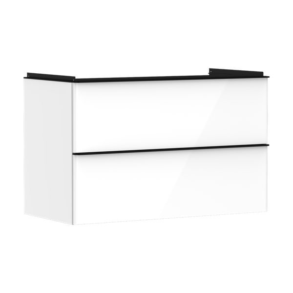 Xelu Q Kommod vit högglans 980/475 med 2 lådor tvättställ Mattsvart