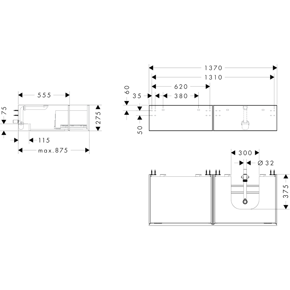 • tvättfat/tvättställ med slipad undersida och bänkskiva måste beställas separat