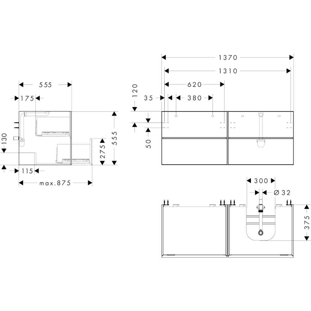 Xevolos E Kommod matt sandbeige 1370/550 med 4 lådor för bänkskiva med utskärnin