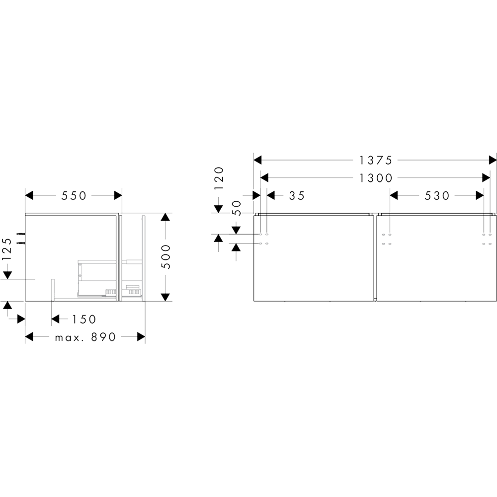 Xilesa E Kommod 1375/550 2 lådor för bänkskiva utskärning center Cashmere Oak