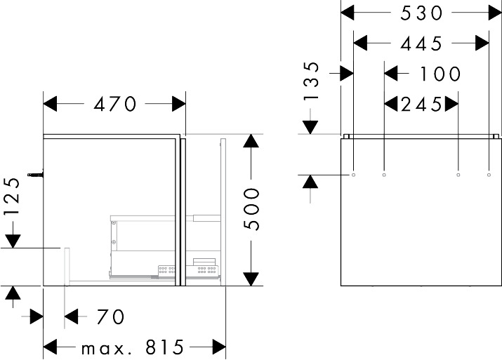 • platsbesparande vattenlås (art. 54235000) krävs och måste beställas separat