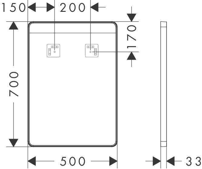 Xarita Lite Q Spegel med horisontell LED-belysning 500/30, väggströmbrytare Mattvit