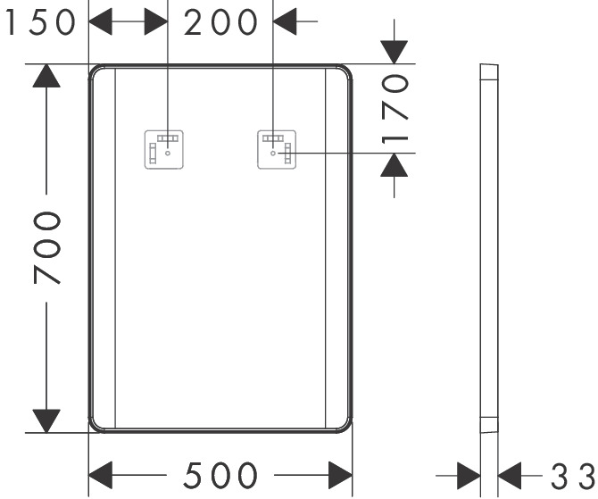 Xarita Lite Q Spegel med vertikal LED-belysning 500/30, väggströmbrytare Mattsvart