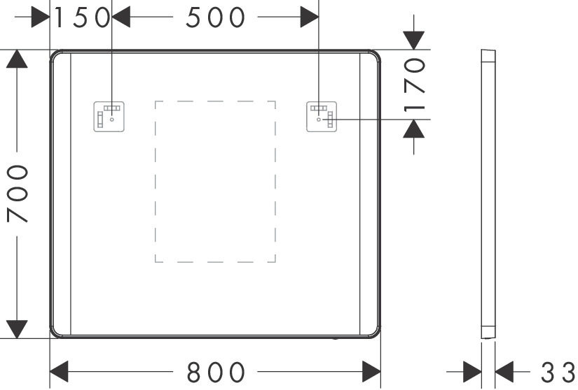 Xarita Lite Q Spegel med vertikal LED-belysning 800/30, IR sensor Mattsvart