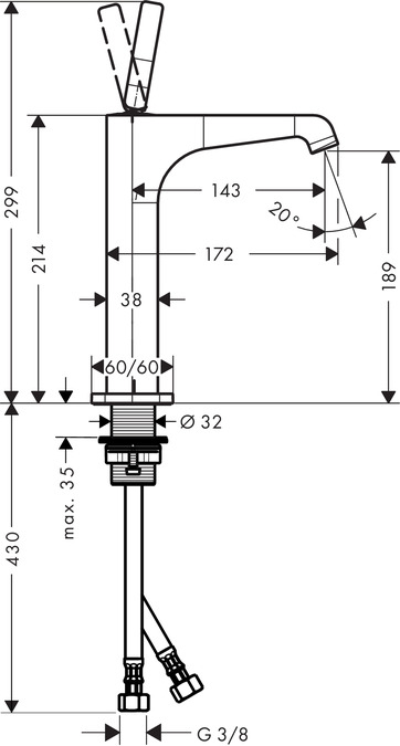Citterio E tvättställsblandare 190 utan lyftventil