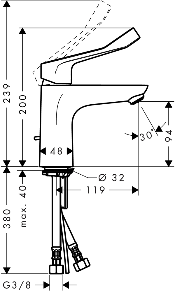 Focus tvättställsblandare 100 Care med extra långt handtag och lyftventil
