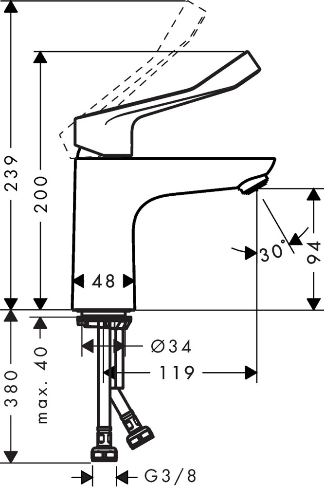 Focus tvättställsblandare 100 CoolStart Care med extra långt handtag utan botten