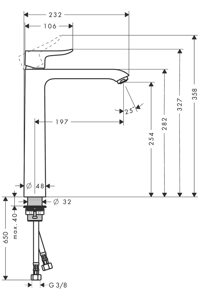 • kranhöjd: 254 mm