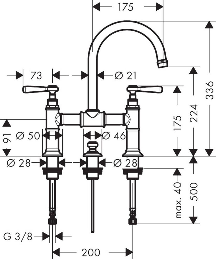 Montreux 2-grepps tvättställsblandare 220 med svängbar pip och lyftventil
