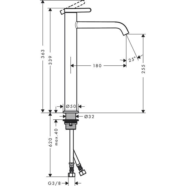 • kranhöjd: 255 mm