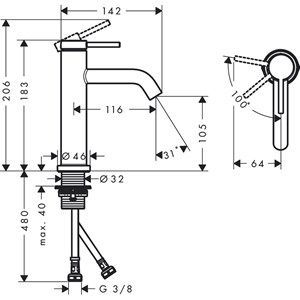 Tecturis S tvättställsblandare 110 CoolStart utan bottenventil Mattsvart