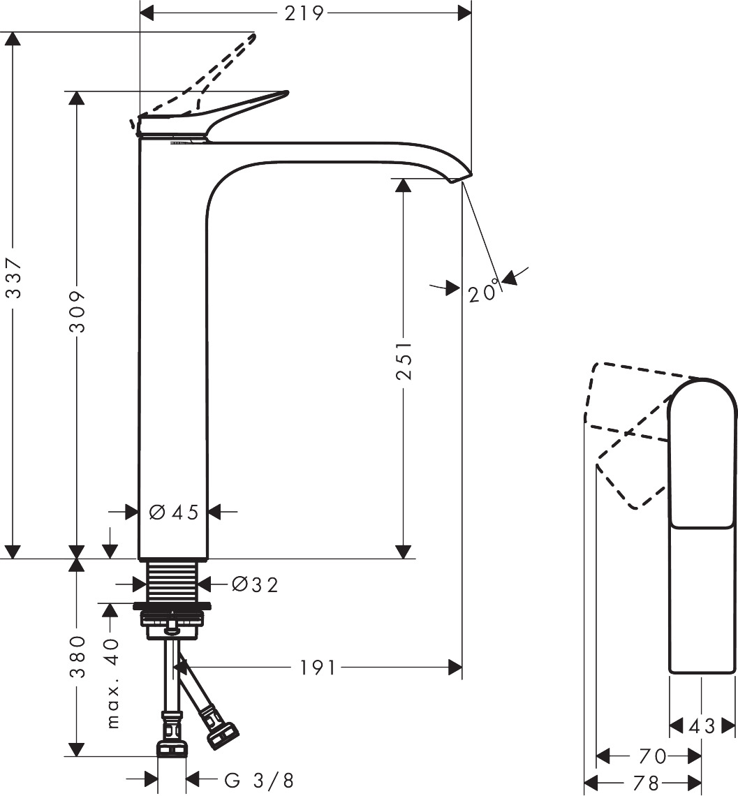 • kranhöjd: 251 mm