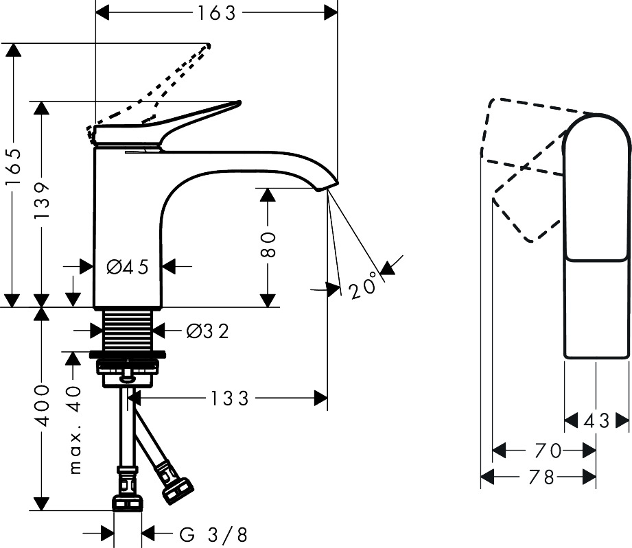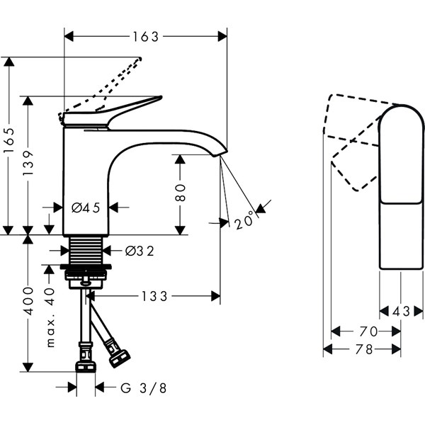 Vivenis tvättställsblandare 80 CoolStart utan bottenventil Krom