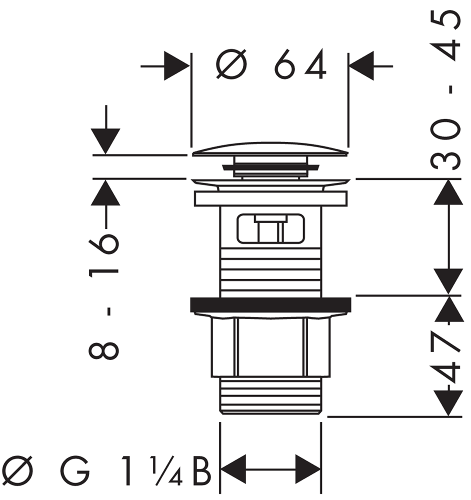 Push-Open bottenventil 1 1/4" plast