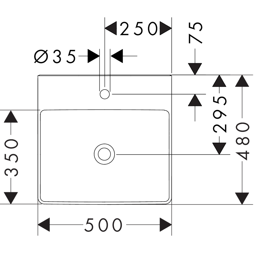Xelu Q Bänkmonterat handfat med slipad undersida 500/480 med blandarhål utan brä Vit