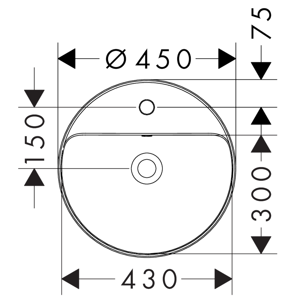 Xuniva S Infällt tvättställ 450/450 med blandarhål och bräddavlopp Vit