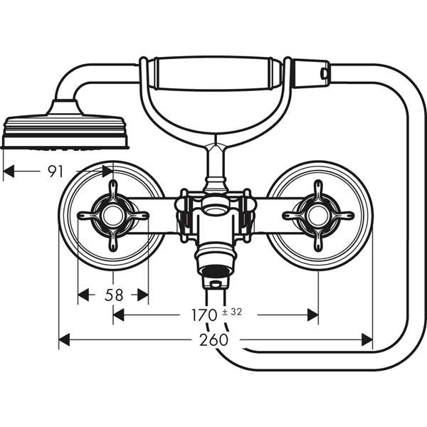 • består av: 2-grepps badkarsblandare, handdusch, duschhållare, duschslang