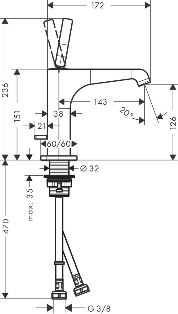 Axor Tvättställsblandare Citterio E 125 med lyftventil Steel
