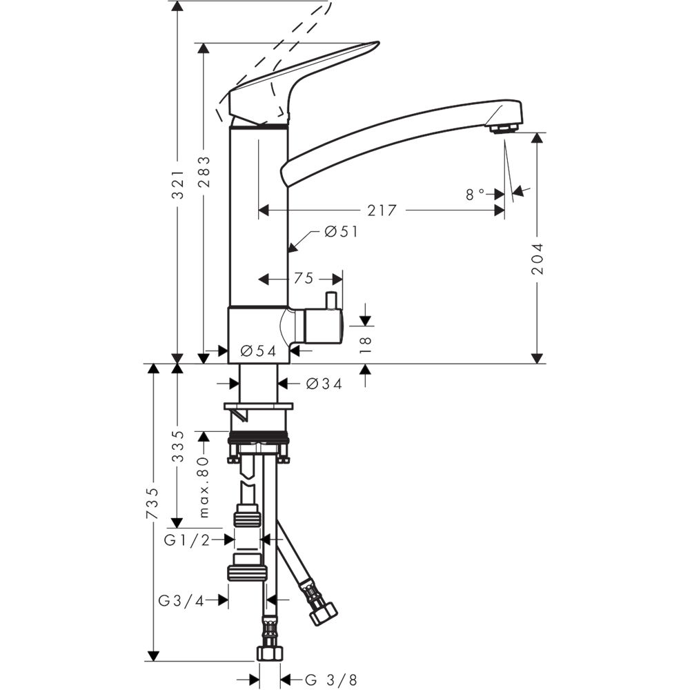 Logis M31 köksblandare 220, med diskmaskinsavstängning, 1jet Krom