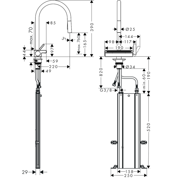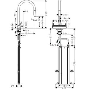 • består av: 1-grepps köksblandare, slanglåda, flerfunktionssil