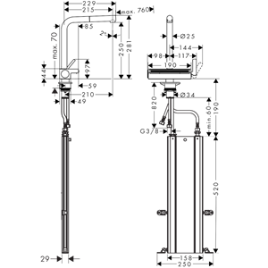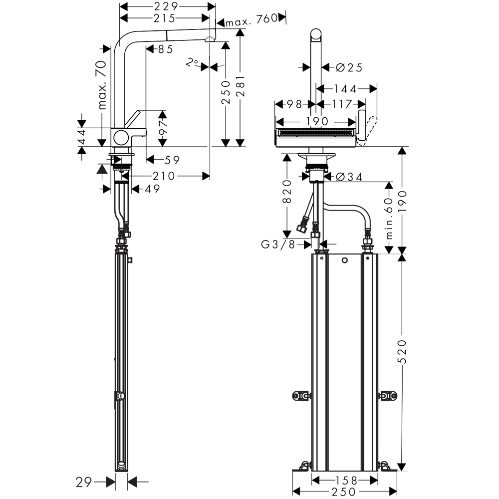 Aquno Select M81 köksblandare 250, utdragbar handdusch, 2jet, sBox Krom